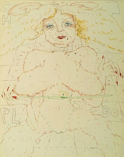 Born in New York City in 1937, raised in California, Linda Kramer has been an important figure in Chicago’s art scene since the late ’60s, when her work was selected for the Art Institute’s Chicago and Vicinity Show. By the time of her 1999 retrospective at the Hyde Park Art Center, she had assembled a large and extremely varied oeuvre that included drawings, oils, watercolors, photo-collages, installations, assemblages and ceramics. In the mid ’60s, Kramer began work on a group of drawings and works on paper, many of them nudes and figures, that culminated in 1972 in an astonishing series she called “Chicago Plateboy.” These harsh satirical images function as her entries in the early phase of Chicago Imagism, and they have clear stylistic connections to Karl Wirsum and Jim Nutt. But where sexuality in their paintings tends towards exaggerated stereotypes, Kramer’s are directly feminist in nature – vicious critiques of bimbo or bachelor culture. This is the first time the “Chicago Plateboy” series and associated drawings have been exhibited.
