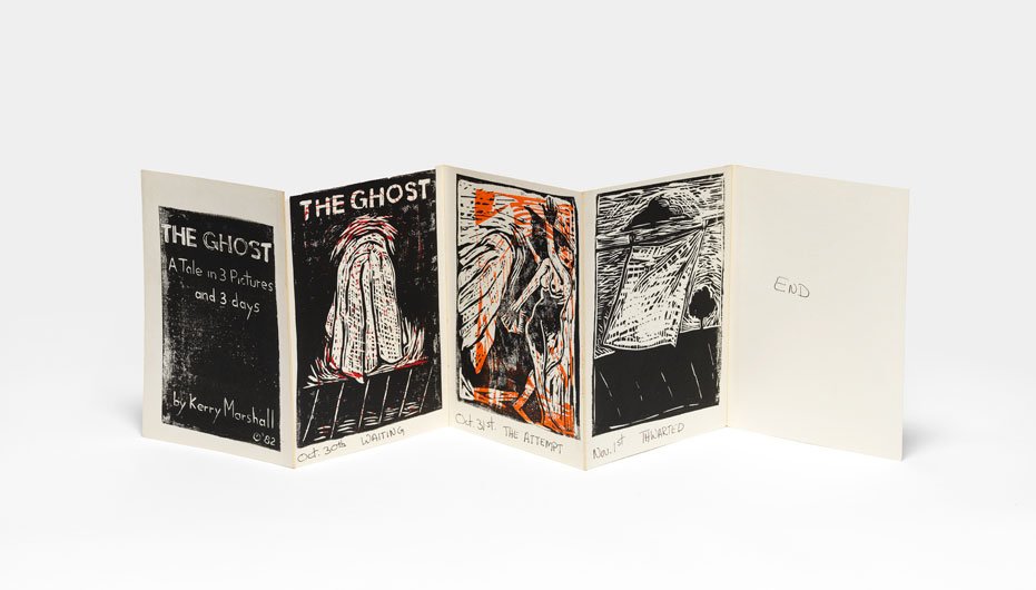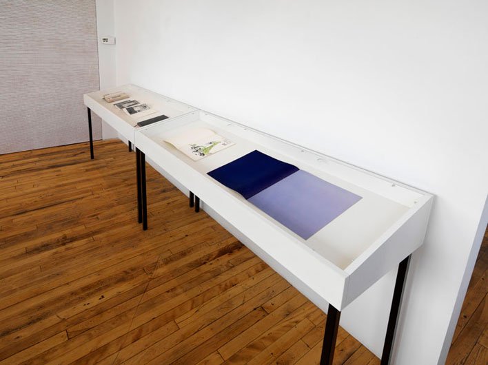 To complement Hamady’s show, Corbett vs. Dempsey has assembled Bookish, an exhibition of book-related works by a diverse range of artists. These include more conceptually oriented pieces by Bruce Nauman (a gorgeous 1968 bookwork), Gary Hill, and Richard Artschwager, a rare, early, accordion-fold book by Kerry James Marshall, Molly Zuckerman-Hartung’s book-painting “The Worl of Matisse,” a vibrant painted book by Arturo Herrera, an exquisite 1970s book of woven paper by Sarah Canright, gritty book assemblages by Allison Knowles and Rodney Quiriconi, and an insanely cool facsimile book by Steve Wolfe, one of the most dogged book-investigator-artists.