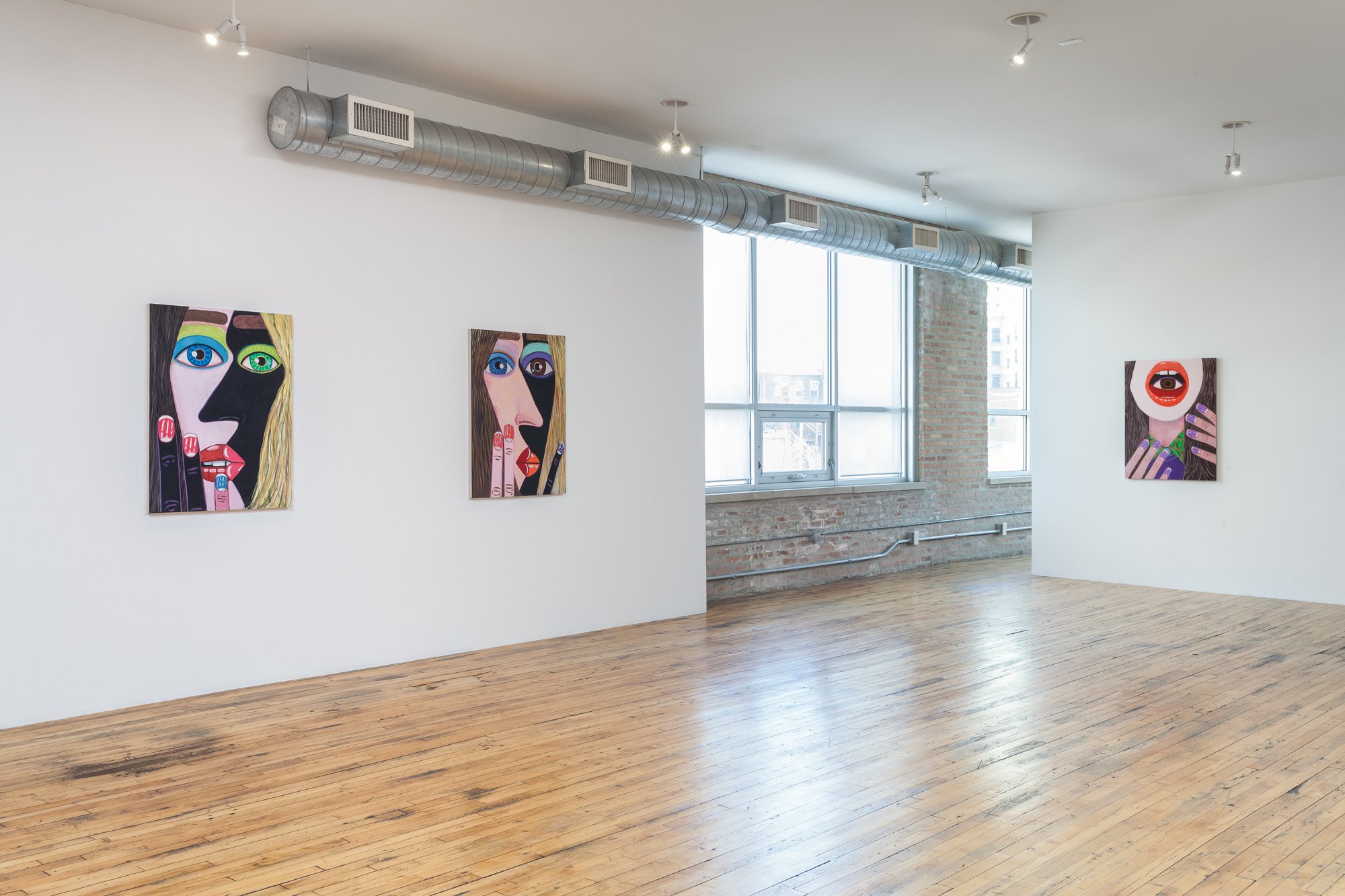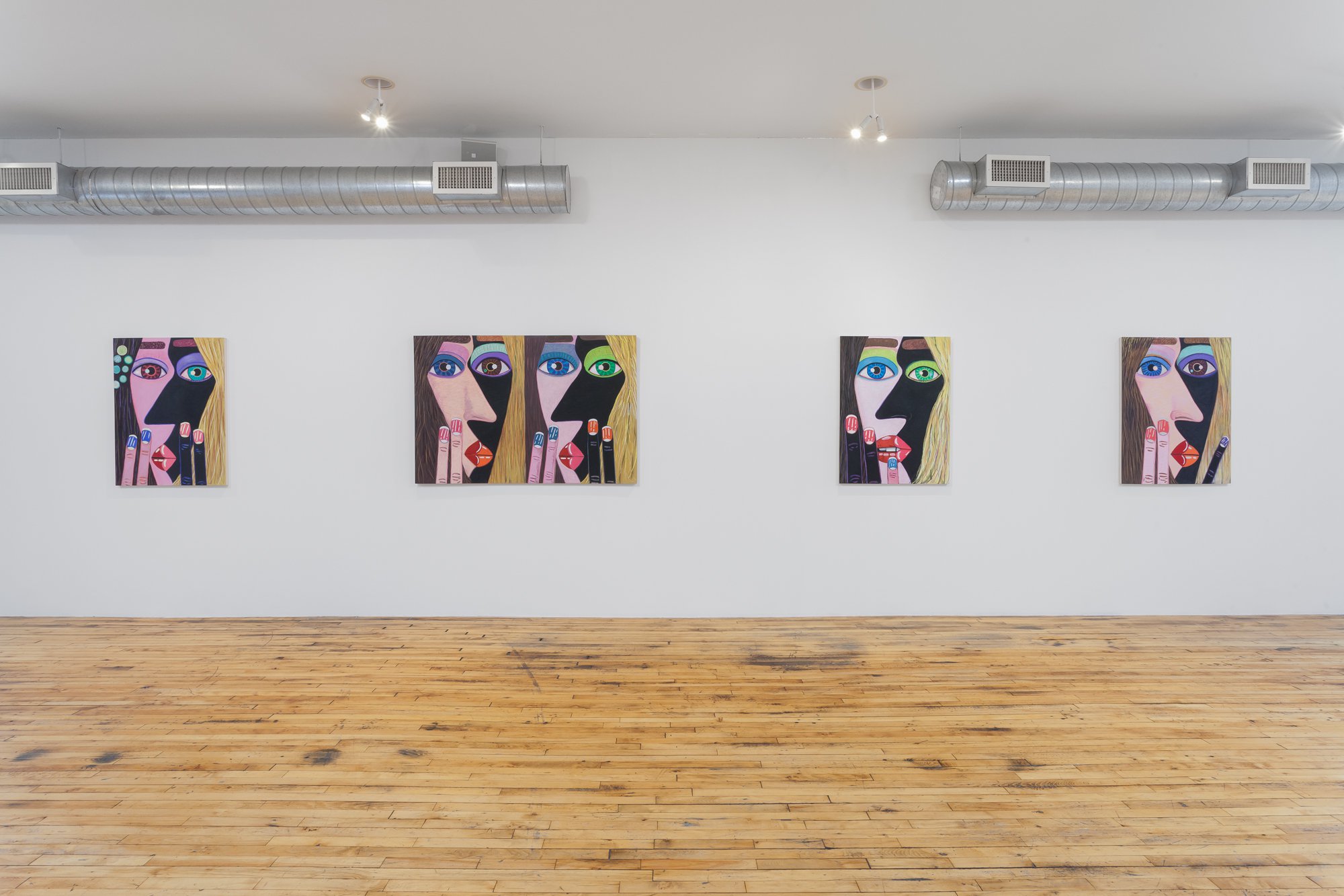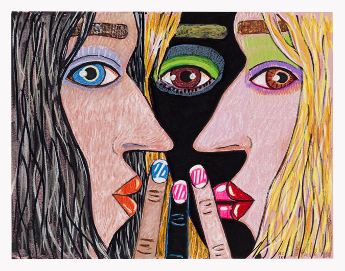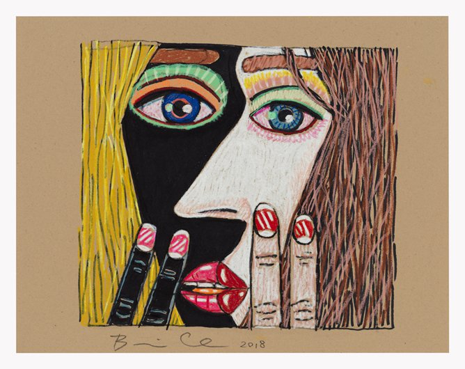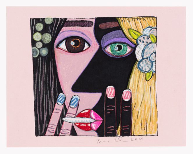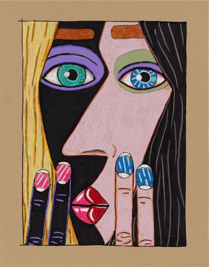 Brian Calvin emerged over the last 15 years as an innovator in the reinvigorated field of figurative painting in the U.S. Calvin’s studies at the School of the Art Institute of Chicago proved formative – indeed, he was a star student of Ray Yoshida and Barbara Rossi – although a return to California is also reflected in his vibrant paintings, which pop and glow with radiant light that might reasonably be called “West Coast.” Each intimately cropped work is imbued with emotional complexity and psychological character, in part through the act of cropping – often the figure (or figures) occupies a tunnel-like space, suggesting an intense interior space of devious monologue or whispered conversation. Recent developments in Calvin’s works include a focus on multiple figures – interlocking women’s faces, chiaroscuro yin and yang, sometimes smoking or pressing finger to lips. The paintings are often executed on board, which allows Calvin to explore different modalities of touch and mark, often more expressive than the flat, refined, harder-edged work of a few years ago. And Calvin has also returned to drawing, an important part of the first phase of his mature work; at CvsD he will show a group of new drawings, many of them vigorously worked, sometimes directly related to paintings, but featuring yet another characteristic feel, with scumbled lines drawn over paint. Pressing On includes large-scale paintings and a salon style wall of works on paper.