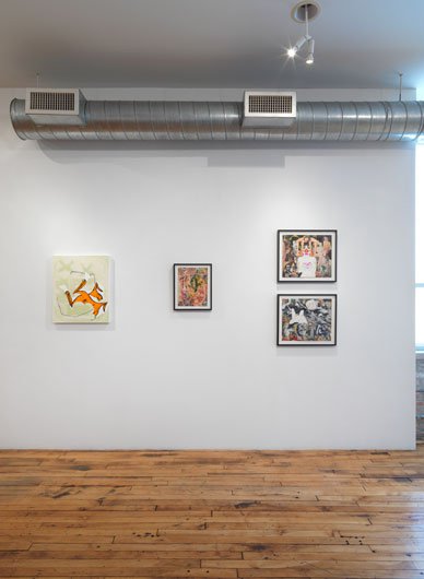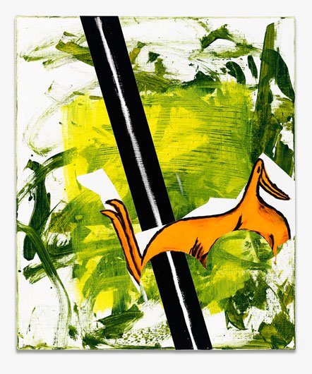 As a perfect counterpoint to Tanaami, painter Charline von Heyl follows her CvsD exhibition last year, Interventionist Demonstration (Why a Duck?), with a reply-show, Why Not? Nine smallish canvases, each of which features the same duck motif that was born in von Heyl’s mural-like painting from the last show (now part of the Art Institute of Chicago’s permanent collection), are distributed throughout the gallery, sneaking up on the Japanese collages, hiding in a corner, peeking from behind a wall. The bright orange ducks interrupt the proceedings the same way they interrupt the little paintings – with irreverence and an unrepentant sense of play. A surprise move from one of the most surprising painters in contemporary art, Why Not? is a question and an answer rolled into one.