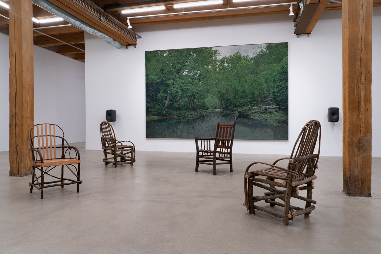 Corbett vs. Dempsey is honored to present David Hartt, The Histories (Old Black Joe), an installation with two Jacquard-woven tapestries and a quadraphonic soundtrack produced for Hartt by legendary musical figure Van Dyke Parks. The exhibition also includes two related photogravure prints and a set of chairs that refer to 19th century Adirondack furniture. This is the artist’s second solo show with the gallery.