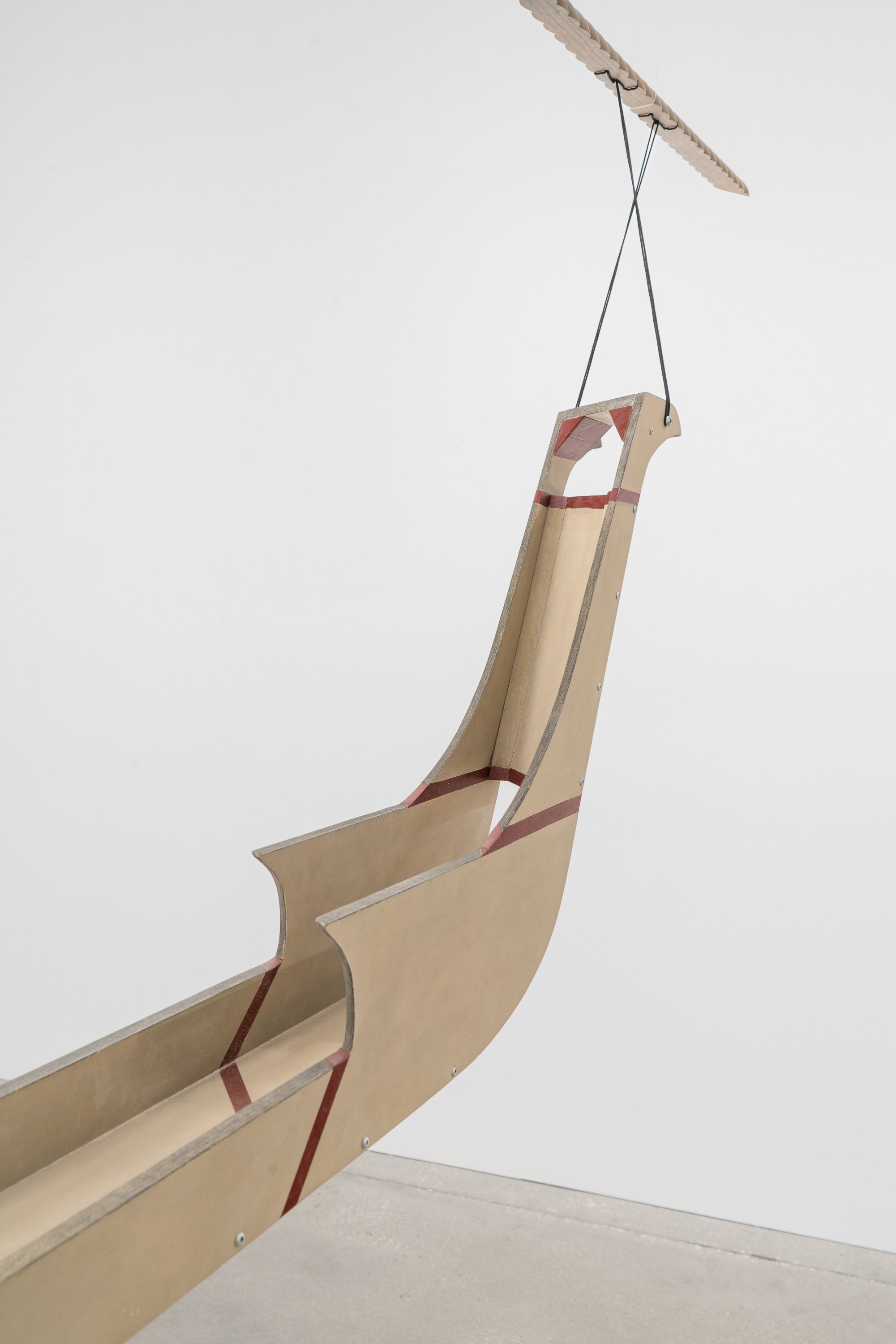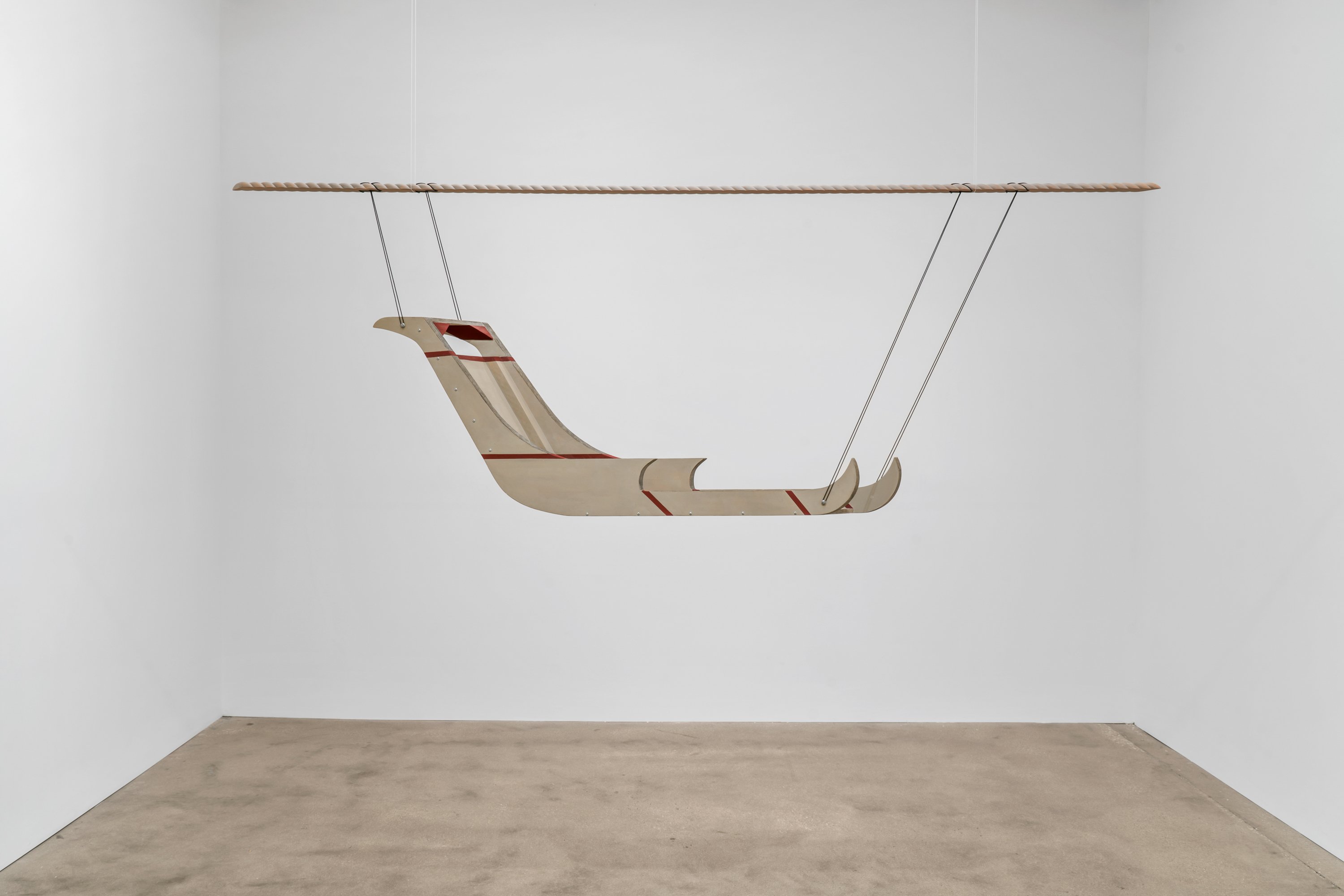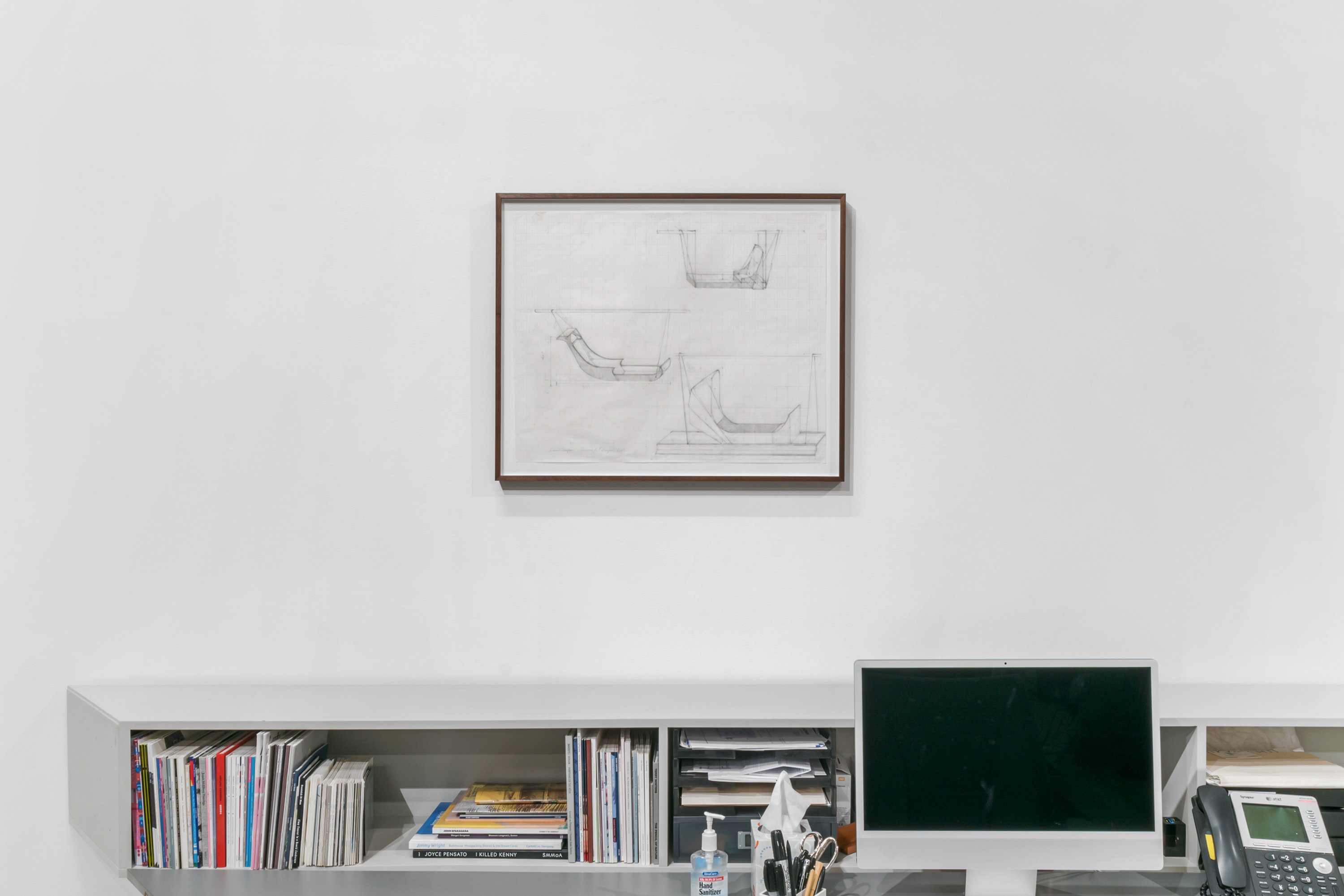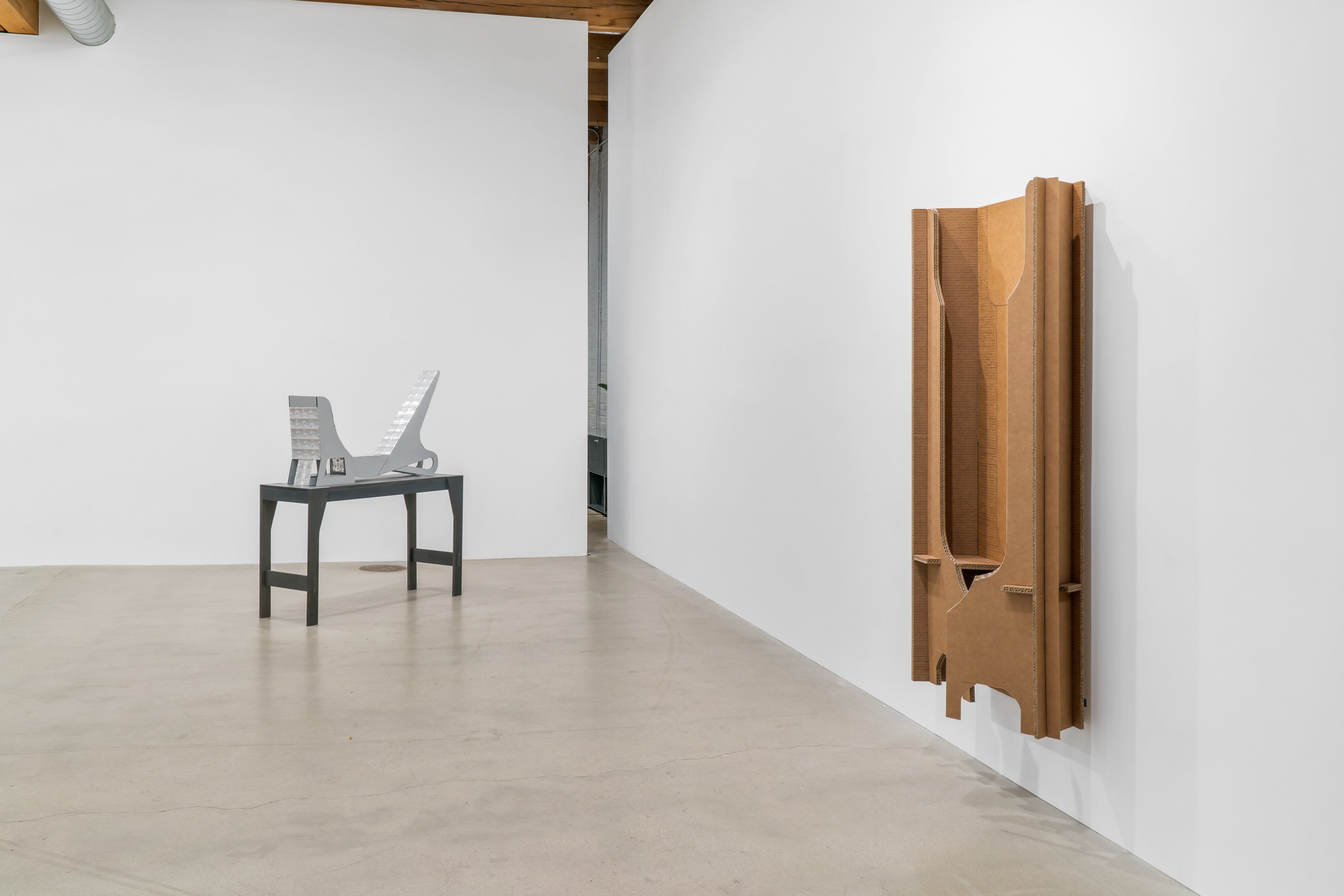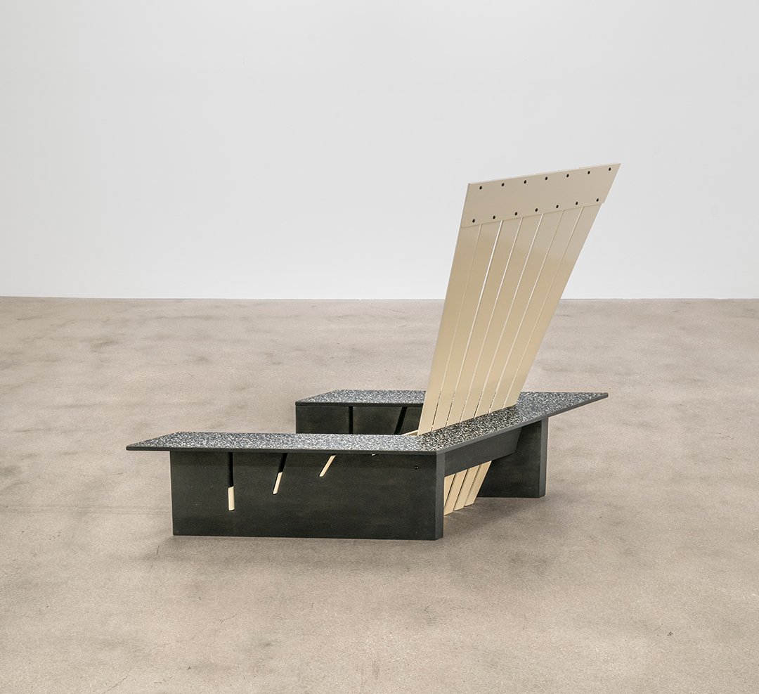 The work’s magic occurs in precisely aligned angles and calculated moments of disorientation, transforming quotidian forms, like that of an Adirondack chair – a common sight on lawns in the northern Chicago suburbs, near where Simpson lives – or embracing the odd, floating quality of a sled-like palanquin, which you’d never find in those environs. Like many of her Chicago compatriots, Simpson is an intrepid image-hound. Source material for this work comes from a vast repository of photographs taken by the artist as well as images she’s foraged from elsewhere, some of which she's held in her mind’s eye for many decades. All of the work is, in a sense, derived from her interest in architecture and human bodies – the architecture of clothing on the body, the architecture of bodies in spaces, and now the architecture of objects of repose. “It seemed natural to move from clothing to architecture to chairs,” she says. “I work from an image and develop the form from there.”