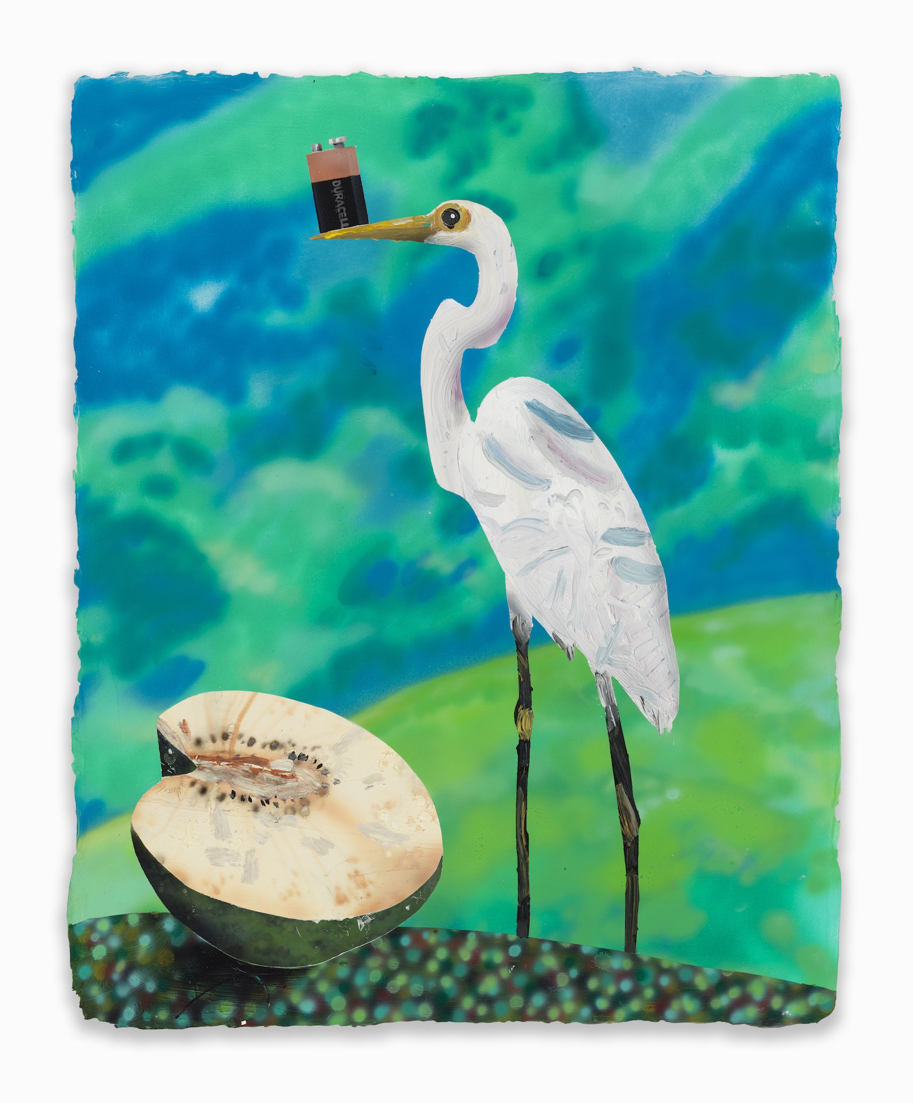 Omar Velázquez, Heron and pana, 2020, oil, acrylic on canvas 20 x 16 inches