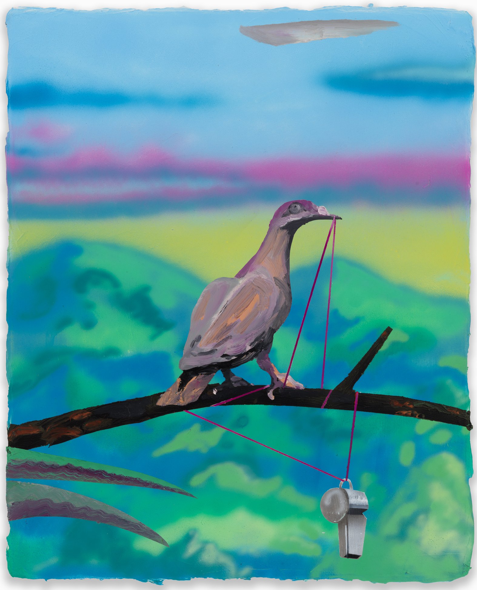 Omar Velázquez, Whistlerblower, 2020, oil on acrylic on canvas, 20 x 16 inches