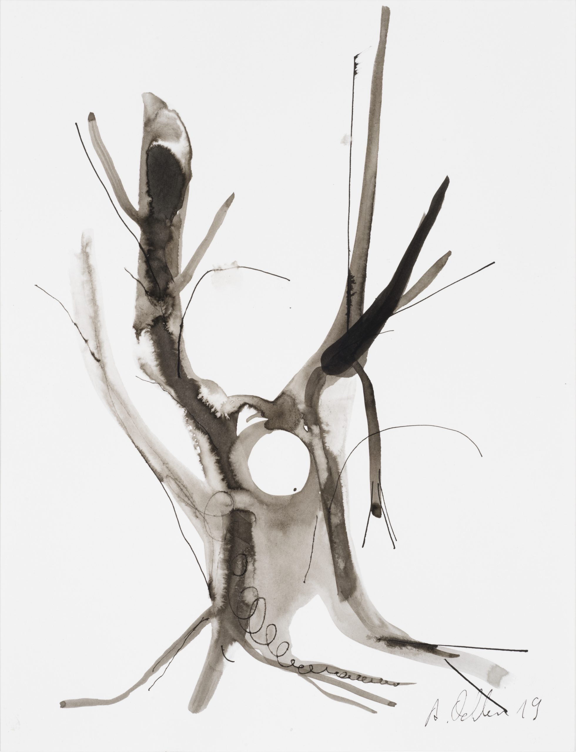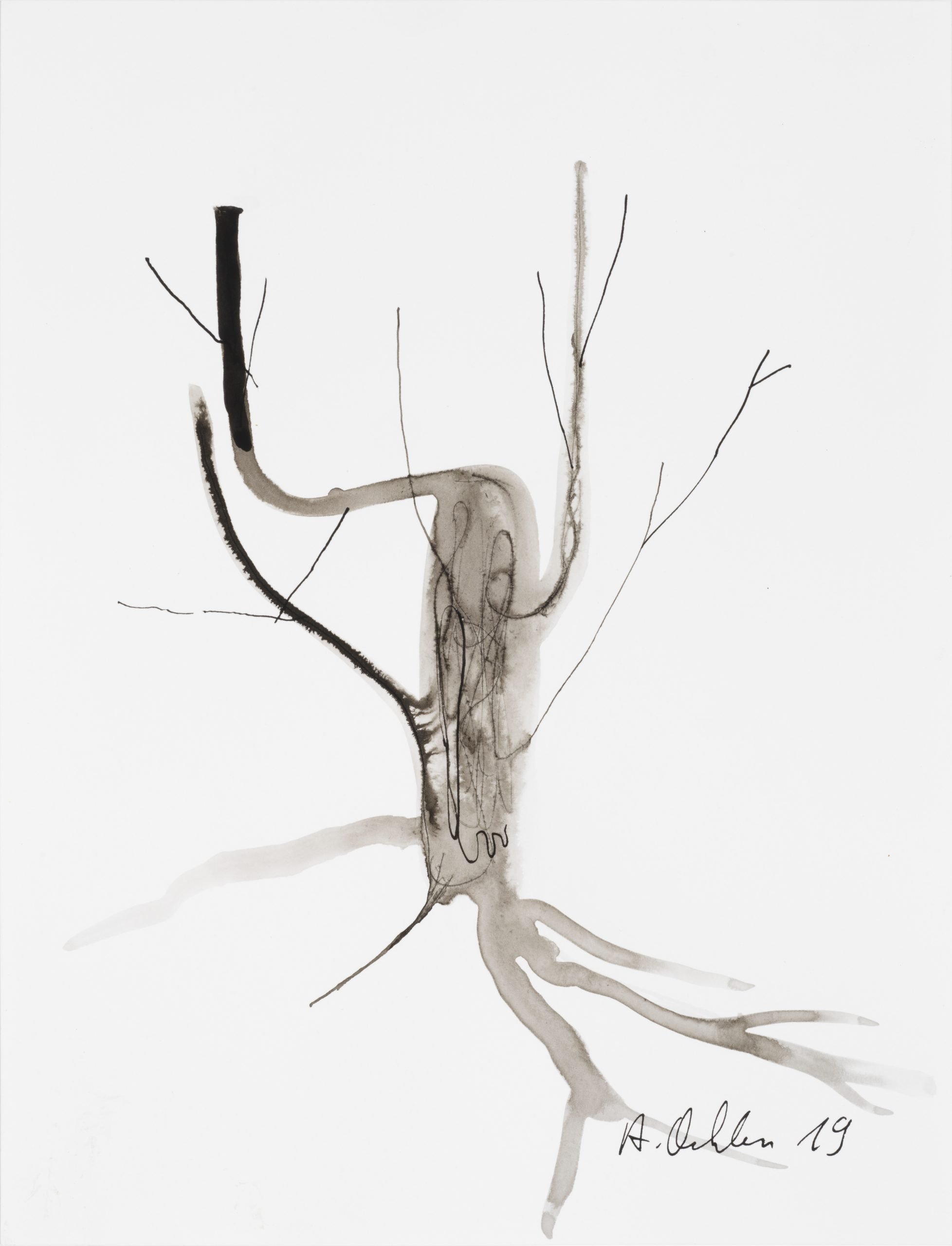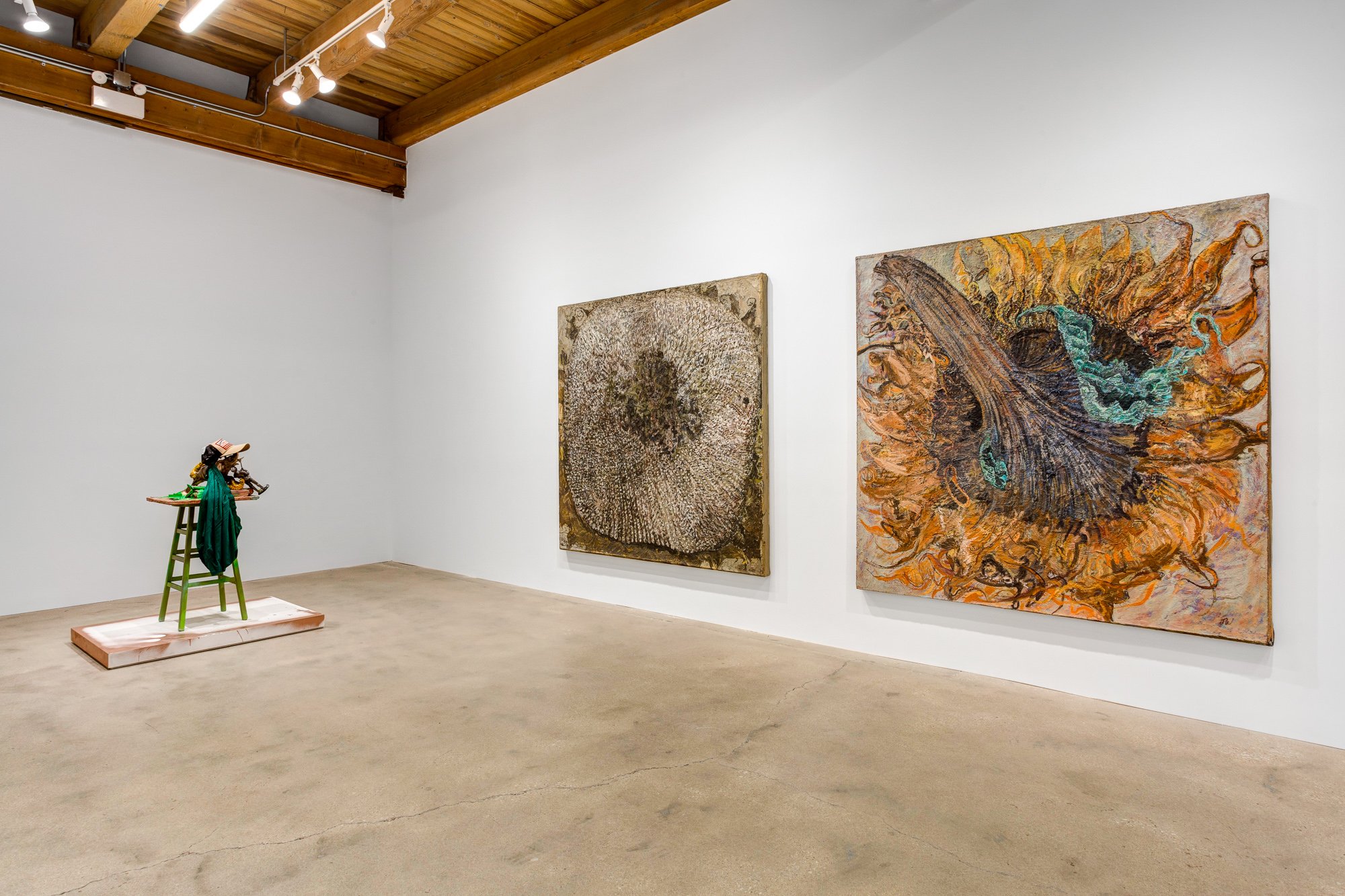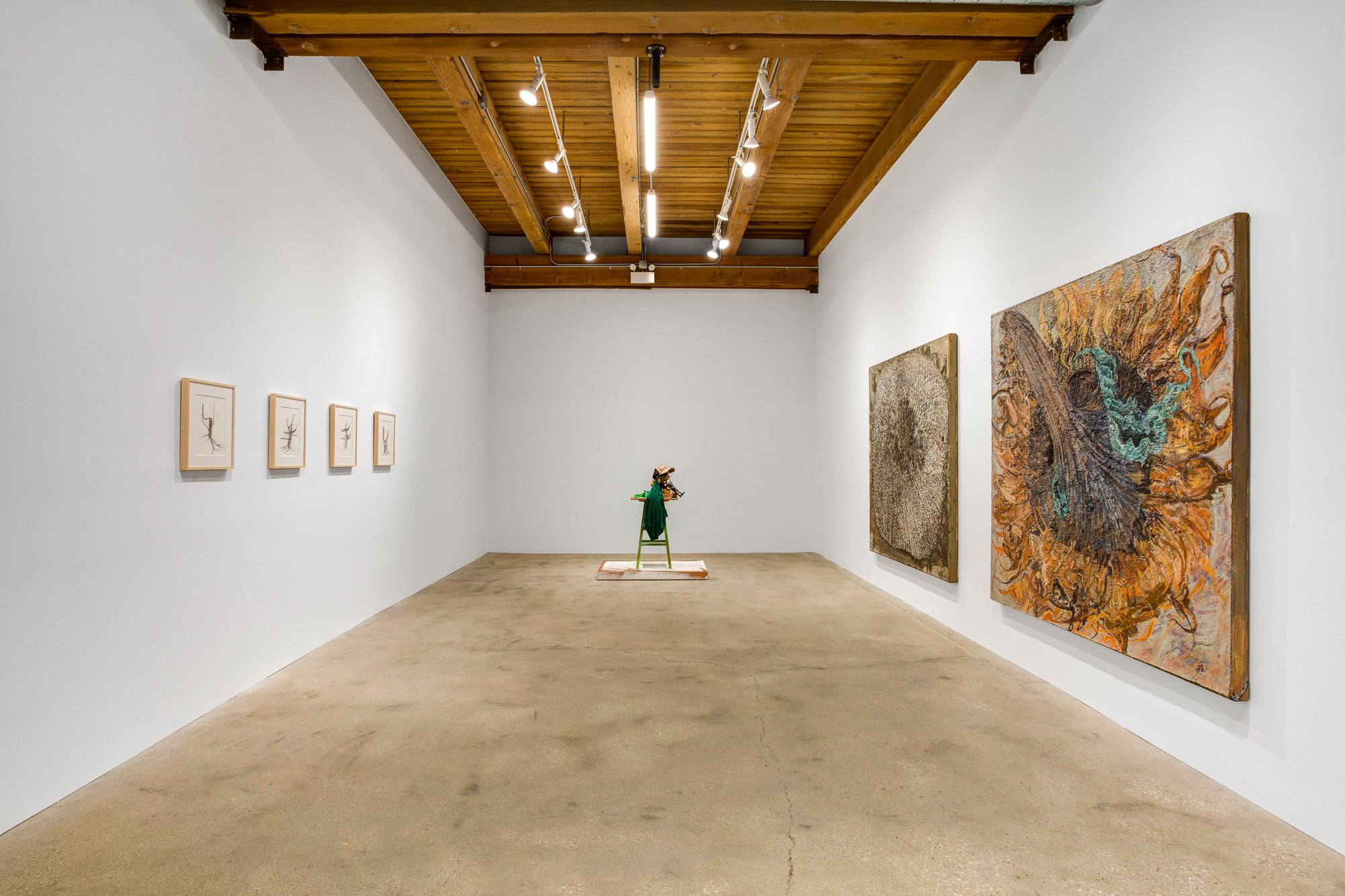 Opening Reception Friday, April 5, 6 to 8pm Exhibition, April 5 - June 22 In the North Gallery, CvsD is pleased to present a three-person show of works by Rachel Harrison, Albert Oehlen, and Jimmy Wright. The drawings, sculpture, and paintings sustain an uneasy state of mind, riding the line between the comic and the melancholic. Harrison’s sculpture “Before You Have To” incorporates a hat gifted to the artist but is also perhaps a memorial to a time that lies ahead; Wright’s two monumental paintings have both a deep sense of sadness and a playful sexual undertone, signaling mourning and reawakening. The first of Wright’s many flower works, they were painted 1988-91, in homage to the artist’s partner who had recently died of AIDS. In four modestly sized ink drawings, Oehlen also manages to subsume several moods into a single complex space, his creature-like trees ranging from ominous to brooding to gleeful.