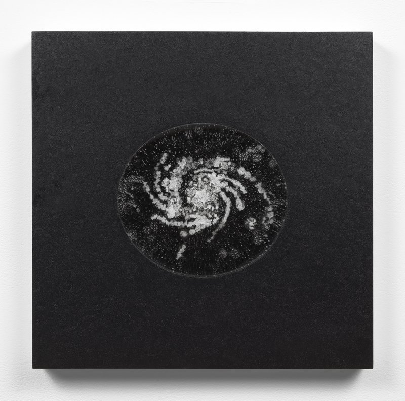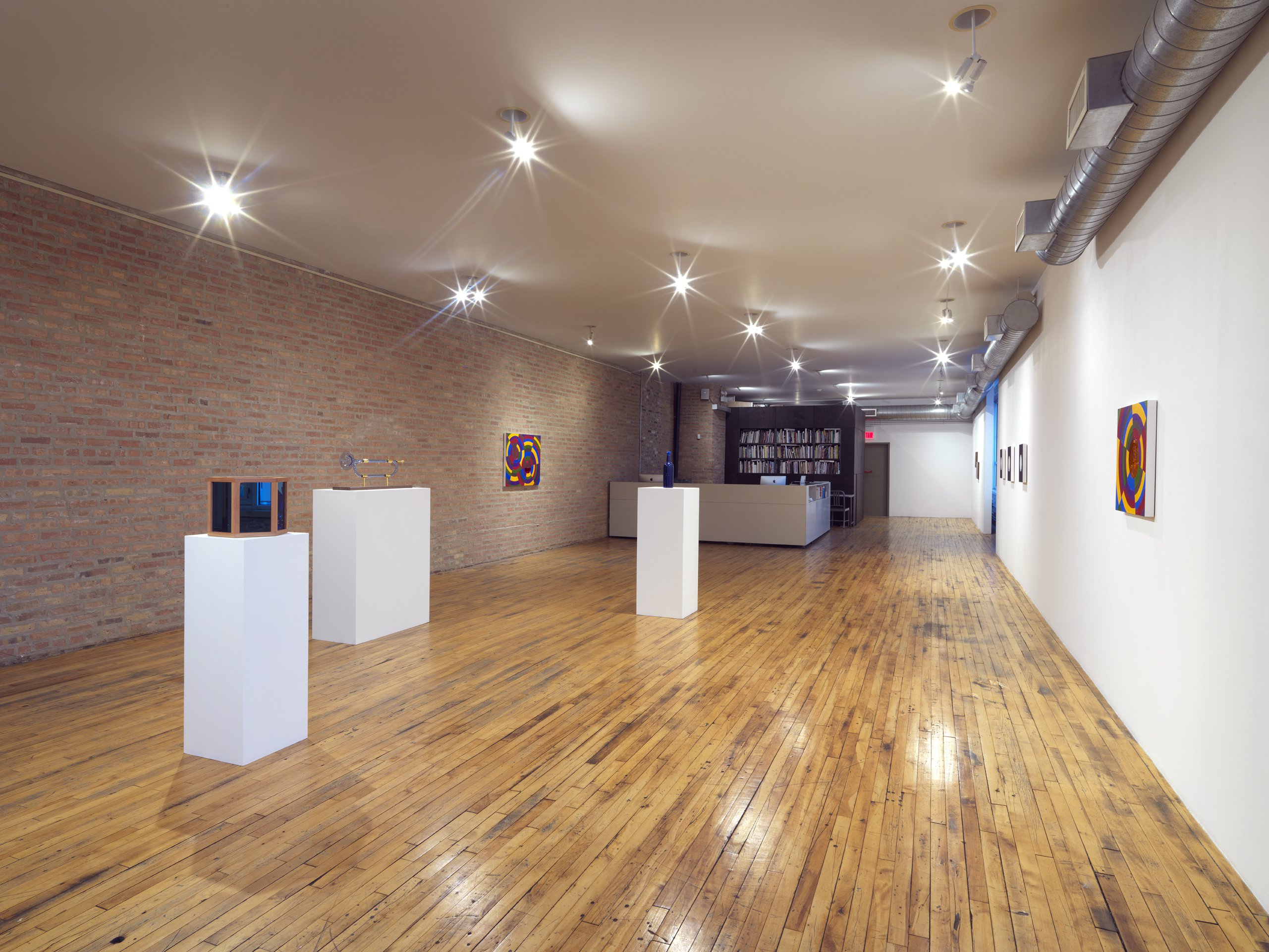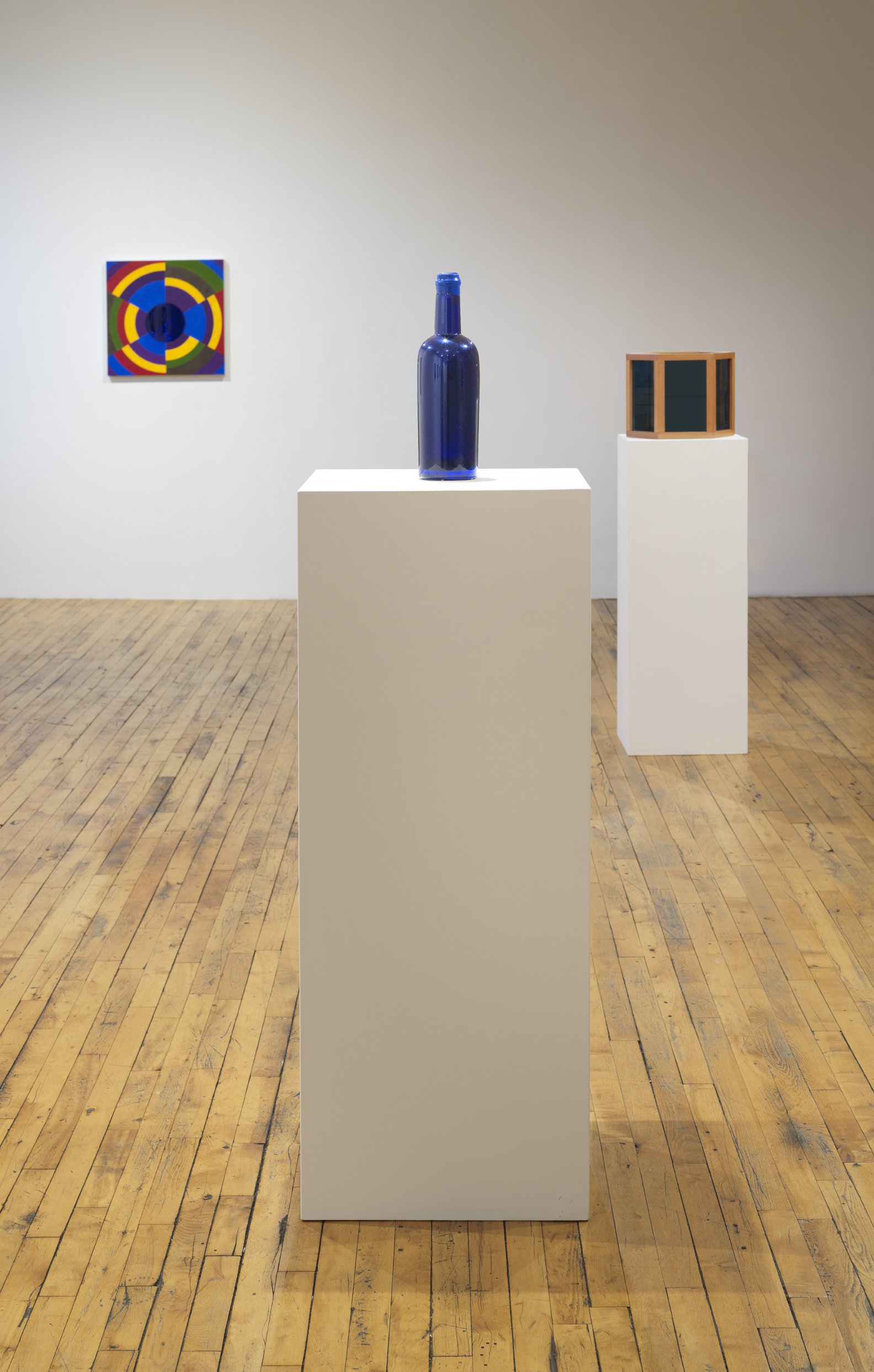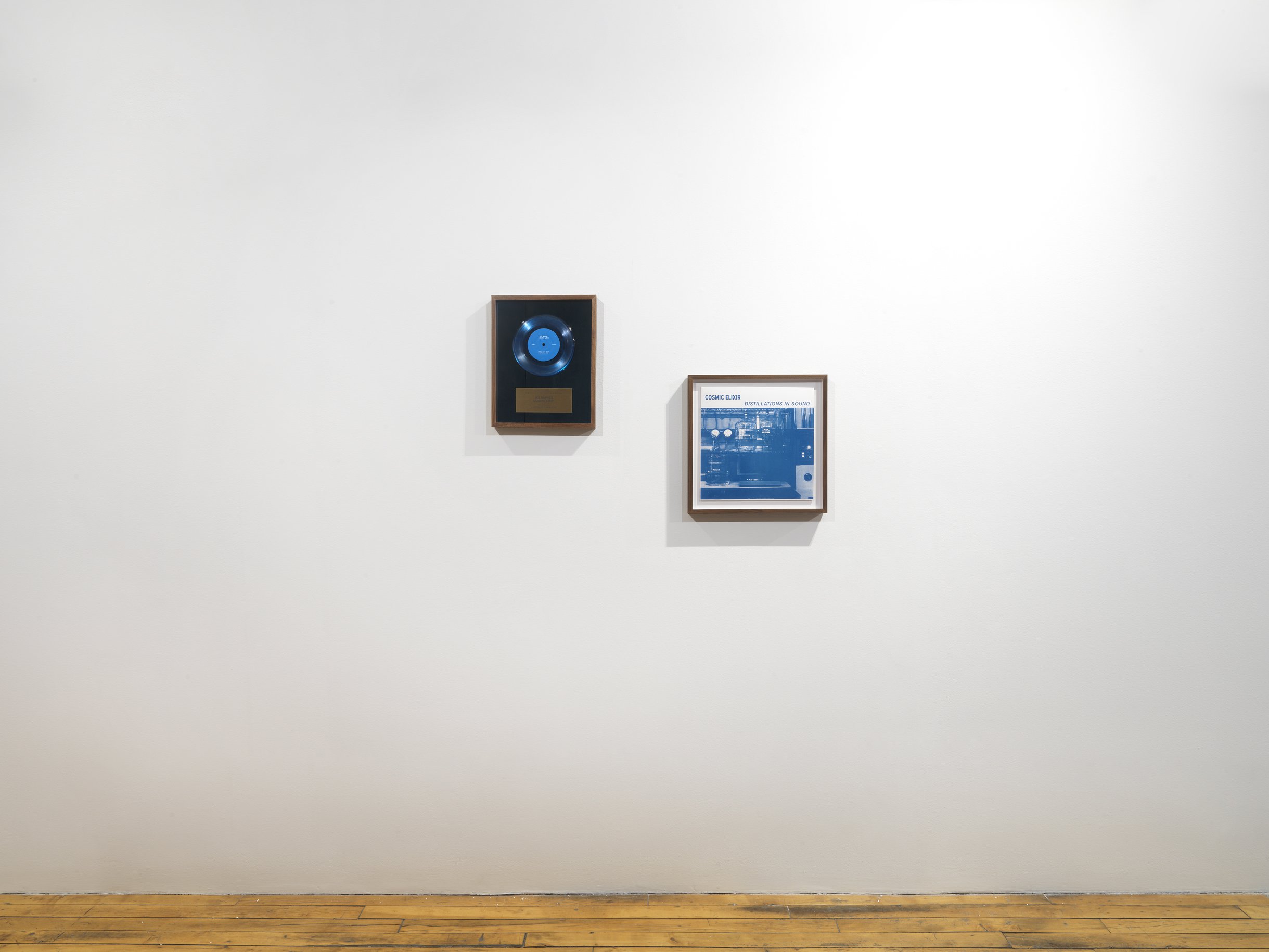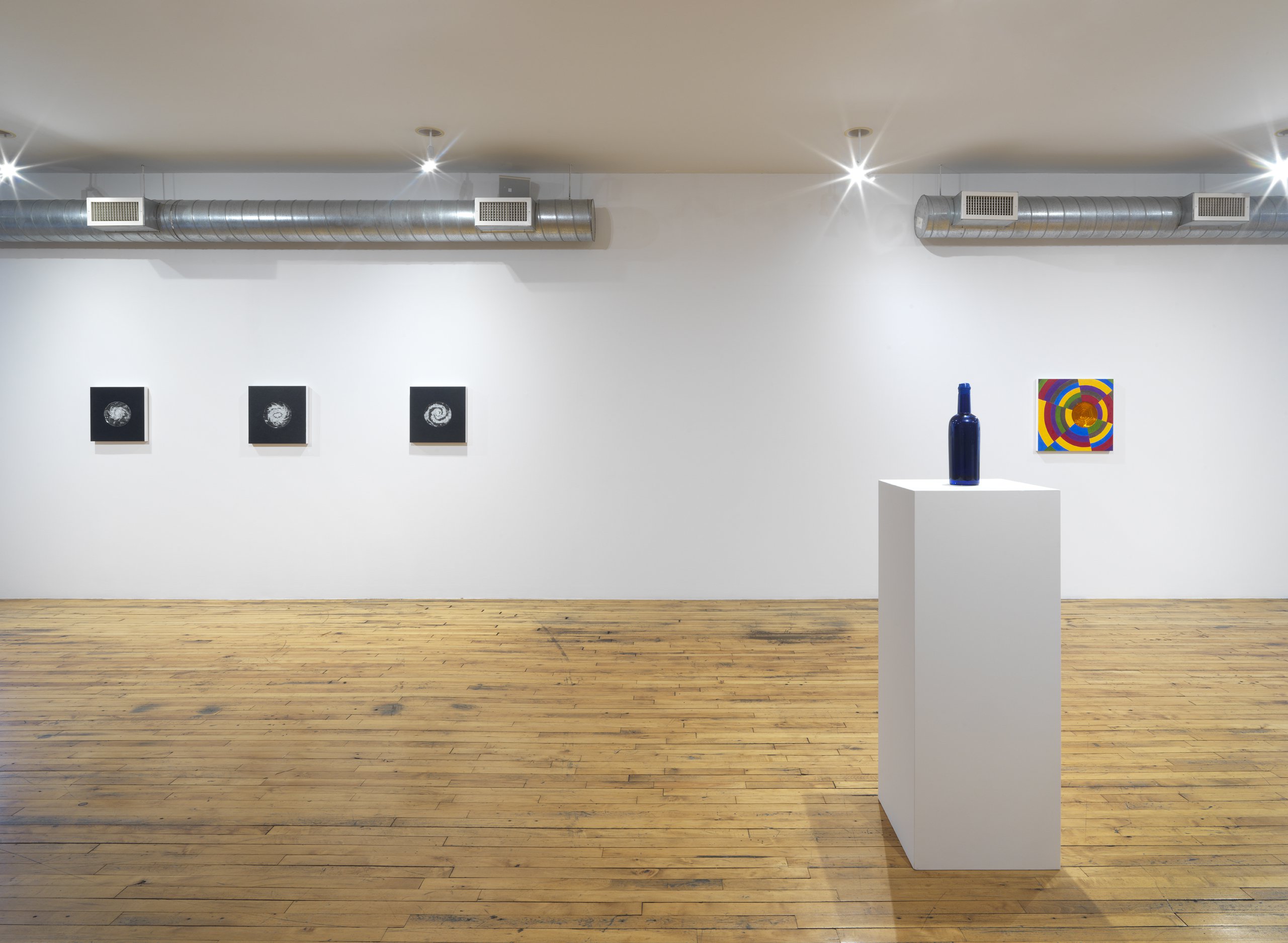 An exhibition of new works by Josiah McElheny, a diverse array of pieces that include brilliant and joyous Cosmic Sun Paintings, inspired by Sonia Delaunay; Cosmic Galaxy Paintings, black and blue with impossible inset galactic glass; the Cosmic Blue Trumpet, designed to be played by Joe McPhee; a Cosmic Love Blue Record, which can only been seen, not described; and bottles of the Cosmic Elixir, a handblown blue glass bottle filled with music that has been distilled into liquid form, a magical and elusive potion known to free one from many afflictions and to set the particles of the brain into ultra-high-speed motion.