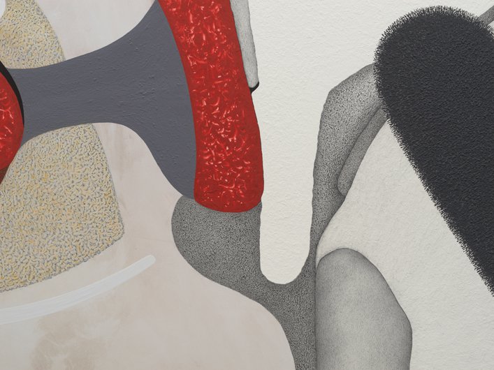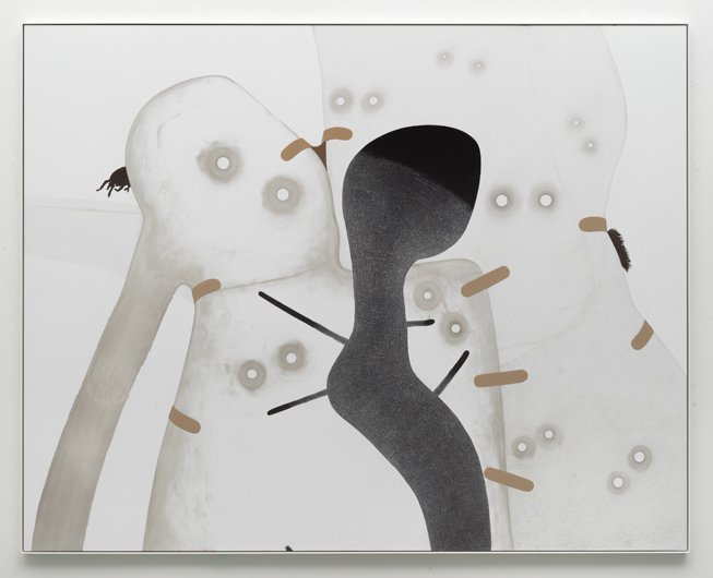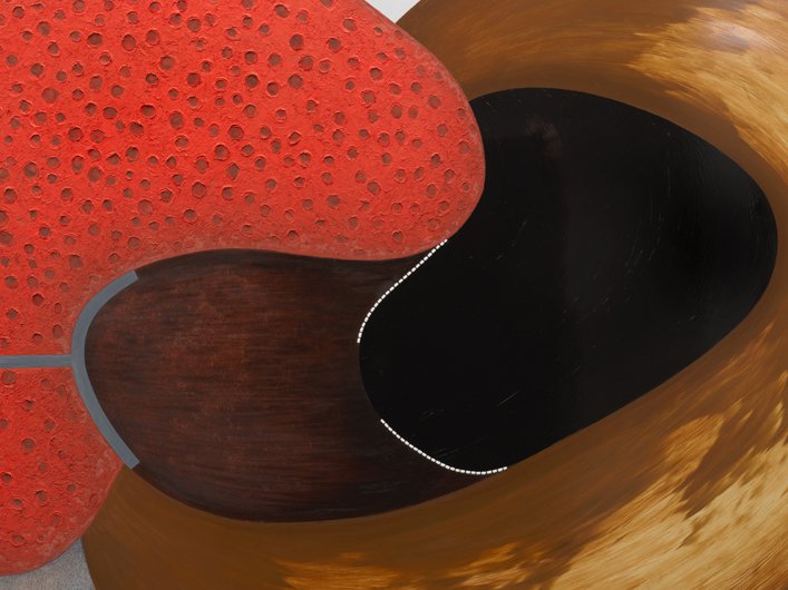 Opens Friday, October 20, 2017, 6-8 PM Corbett vs. Dempsey is thrilled to present A Sawdust Feast, featuring new paintings and a new drawing by Lui Shtini. This is Shtini's second exhibition at the gallery. Born and raised in Kavaje, Albania, Shtini emigrated to the United States at the beginning of the 2000s, and he now lives and works in New York City. Over the course of the last two years, Shtini has set himself the ambitious goals of shifting his imagery and changing scale. His earlier works were centered on portrait-like forms, busts of imaginary beings at once abstract and concrete, with immaculate attention to the details of paint application. Each one of the small paintings a veritable primer on unorthodox techniques. In his new, large scale paintings, Shtini has adopted a new support – Dibond aluminum – and has complicated the near-symmetry of the portraits, introducing multiple organic forms into the framed field. Two or more forms are often locked in some agonistic, intimate, even perverse interaction, their surfaces sinewy or slick, pockmarked or fuzzy, toothed or hairy. The cropping of the image is equally important, providing additional tension and suggesting lurking presences outside the visible arena. All Shtini's wondrous attention to painting is still very much present, abetted by areas of looser application and other unforeseen delights. In his recent drawings, one example of which is included in the exhibition, Shtini explores similar images with appropriately different methods, investigating the specificity of charcoal and graphite as applied to these magnificently monstrous pictures. As John Yau suggests in his essay for the exhibition catalog: "...he has no set way of positioning his forms. Rather, every form he makes in a work is something he discovers through the application of his medium." A Sawdust Feast is accompanied by the aforementioned 52-page catalog with color reproductions and an essay by Yau.