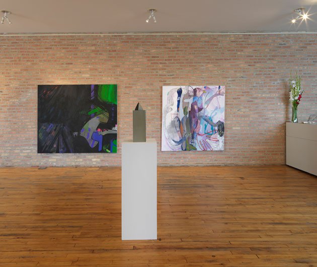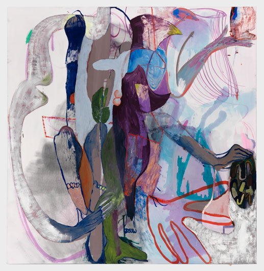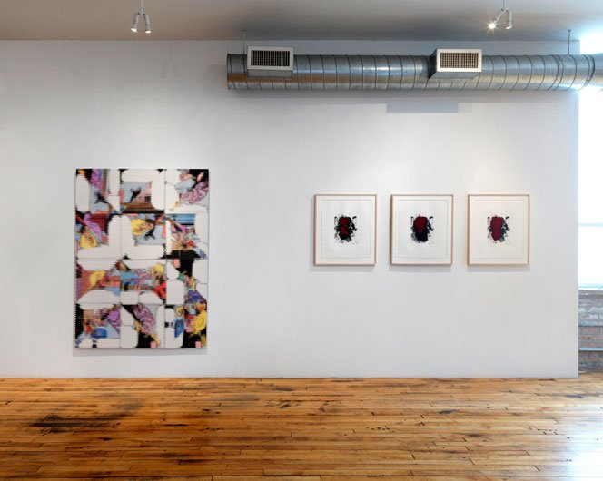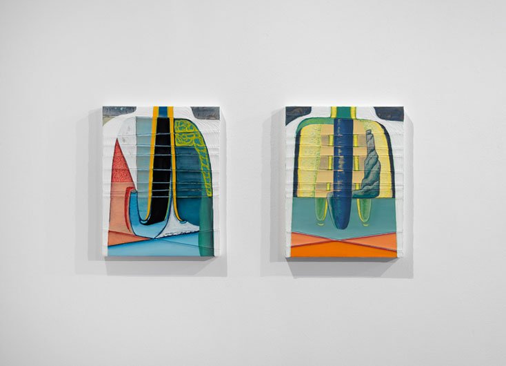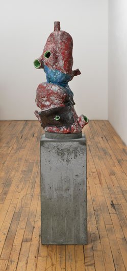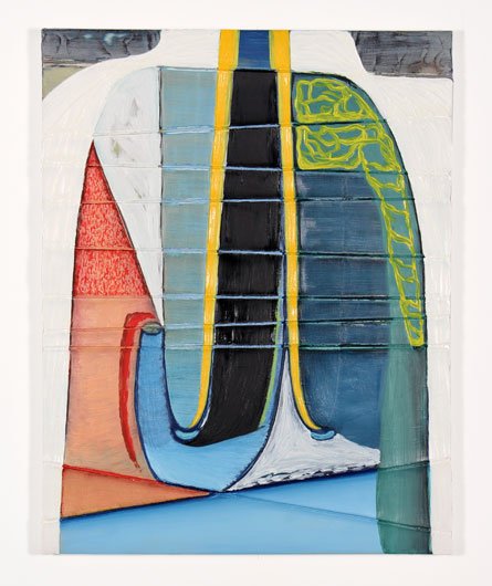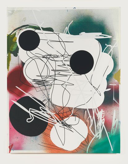 Curated associatively around Ra’s suggestive phrase, the show gathers together artists who in one way or another investigate space in abstraction: the fold, the flap, the slip, planar, curvilinear, rectilinear, concave, convex, super-flat, organic, mechanical, shallow or deep. Ra’s own 1966 work, which will hang in the show, features a simple linear vortical spiral, inviting the viewer to dive into another dimension; hovering next to it is an angular automatic drawing, spiky and foreboding; both float on a silver foil backing. Mark Flood’s enormous canvas situates a gauze fabric veil at the picture plane, behind which a chasmic depth is inferred; Christopher Wool’s intimate monoprints blot a bright red mark atop a printed black and white background, condensing or collapsing the space of the image. Ricky Swallow’s trompe l’oeil bronze sculpture suggests a rope trick frozen in time; Arlene Shechet’s “Space Place,” which also takes its name from Ra, places a cardiod organic glazed ceramic on a contrastingly smooth concrete pedestal. In John Sparagana’s new work the empty text bubbles of a Dick Tracy comic are delicately scrambled to reveal absent potentialities – space of thought, thoughts of space. The exhibition features new paintings by Ellen Berkenblit, Jeff Elrod, Magalie Guérin, Rebecca Morris, Lui Shtini, and Molly Zuckerman-Hartung, and a 1981 painting by Miyoko Ito; new collages by Lesley Vance; recent hand-tinted photographs by Josiah McElheny; and a 1962 sculpture by William T. Wiley.