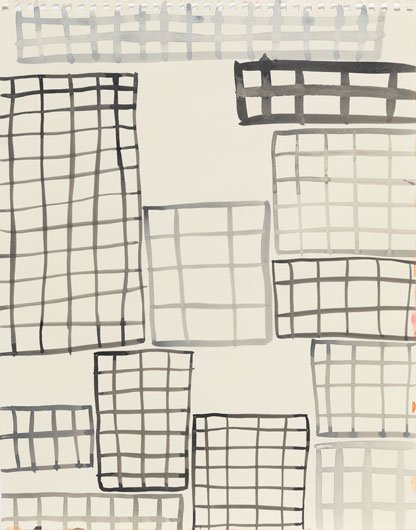 Based in her hometown of Los Angeles, Morris is an abstract painter of uncommon inventive powers. Her large canvases incorporate drawn elements—linear gesture, repetitive line, intimations of depth—but in a distinctly painterly manner, with great sensitivity to facture and tonality. Indeed, drawing has always been a significant part of Morris’s process; she periodically takes time out to execute a body of drawings, and these highly coloristic works refresh and inspire her painting. In her first exhibition at Corbett vs. Dempsey, Morris presents several stunning new paintings, contrasted with a survey of drawings dating back to the period in the mid 1990s, when she had just graduated from the School of the Art Institute of Chicago. Dazzling and often quite humorous, Morris’s drawings show her special manner of using formal means to prod and pry at other kinds of meaning, be they connotative, emotional, or literal. Blocks of color, splatter, loose grids of varying line weight, washes and deft use of resist, occasional words and dates spelled in sweeping strokes – these are works that span available techniques and materials for potency and deliver the goods. The paintings are utterly delicious, compiling fragments into a constellation or luring with the possibility of resolution, then holding out, like a dissonant last chord.