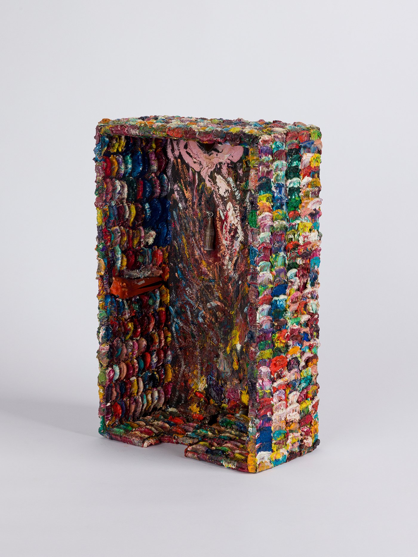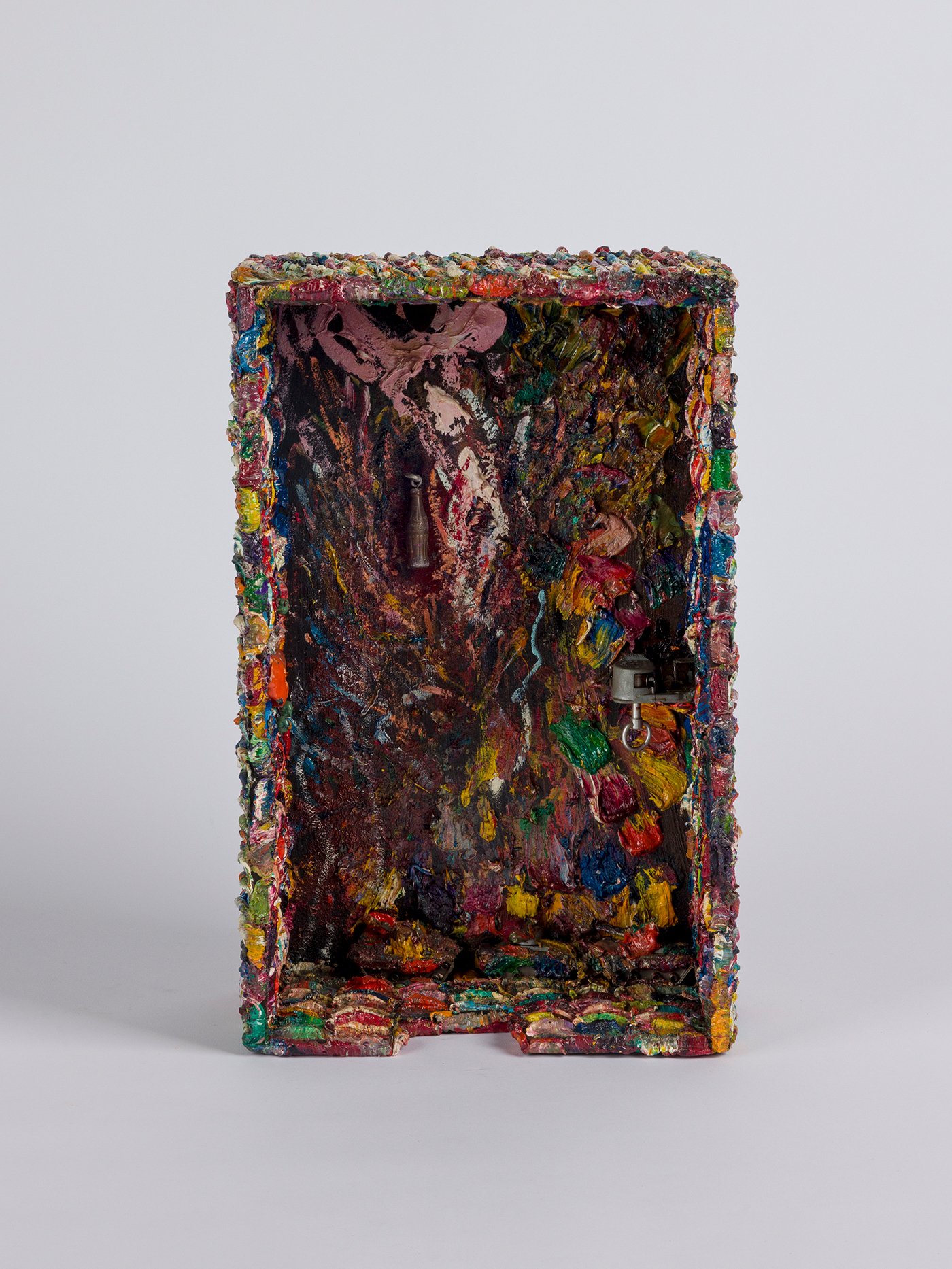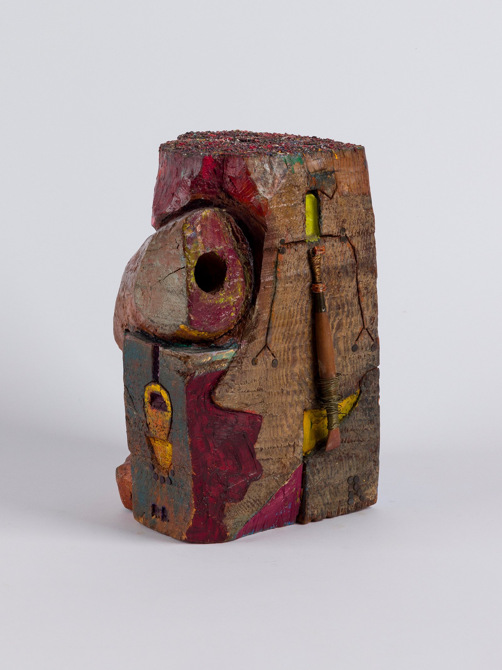 In this exhibition, CvsD presents an important canvas by Rosofksy, Vietnam, Chicago, Czechoslovakia. Painted in 1968, it features a sinister figure smiling and crushing tiny people in its fists, flanked by mushroom clouds and looming over maps of the three titular sites, each one the scene of violent anti-democratic events. Each of the geographical locations is marked as a grave with a cross. This powerful piece will be haunted by a group of Donley's sculptural works. Although he's best known as a painter, Donley has amassed a small oeuvre of 3-D works dating back to his stint in Southern California in the early 1960s. By turns grotesque and elegant, they incorporate found doll parts, wood, string, metal or fabric mesh, and other evocative flotsam into fascinating fetishes, overpainted with muscular gobs or a fine finish. These works, mostly executed in the 1970s, sublimate political energy into an abstract form, energizing the objects most powerfully, situating them somewhere between stillness and rage.