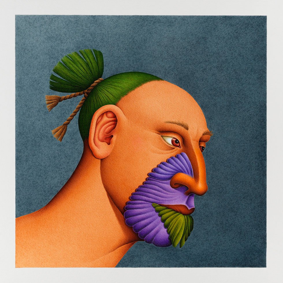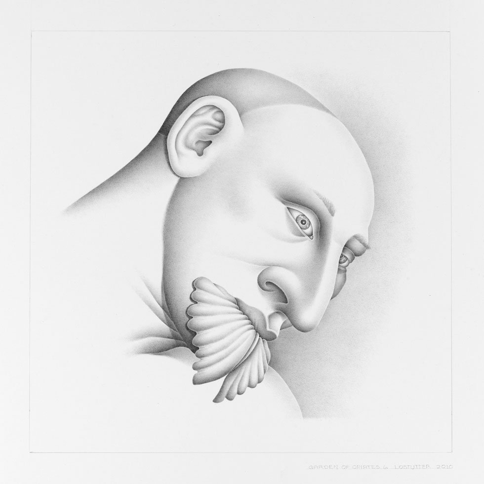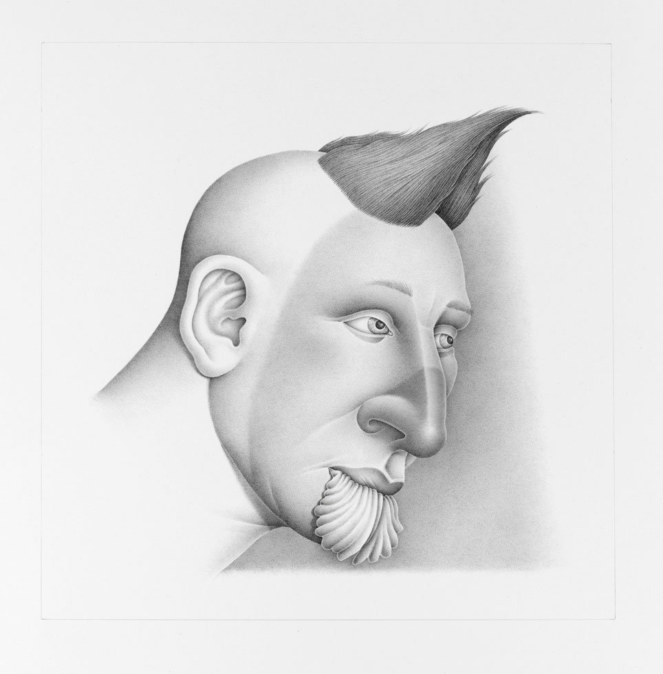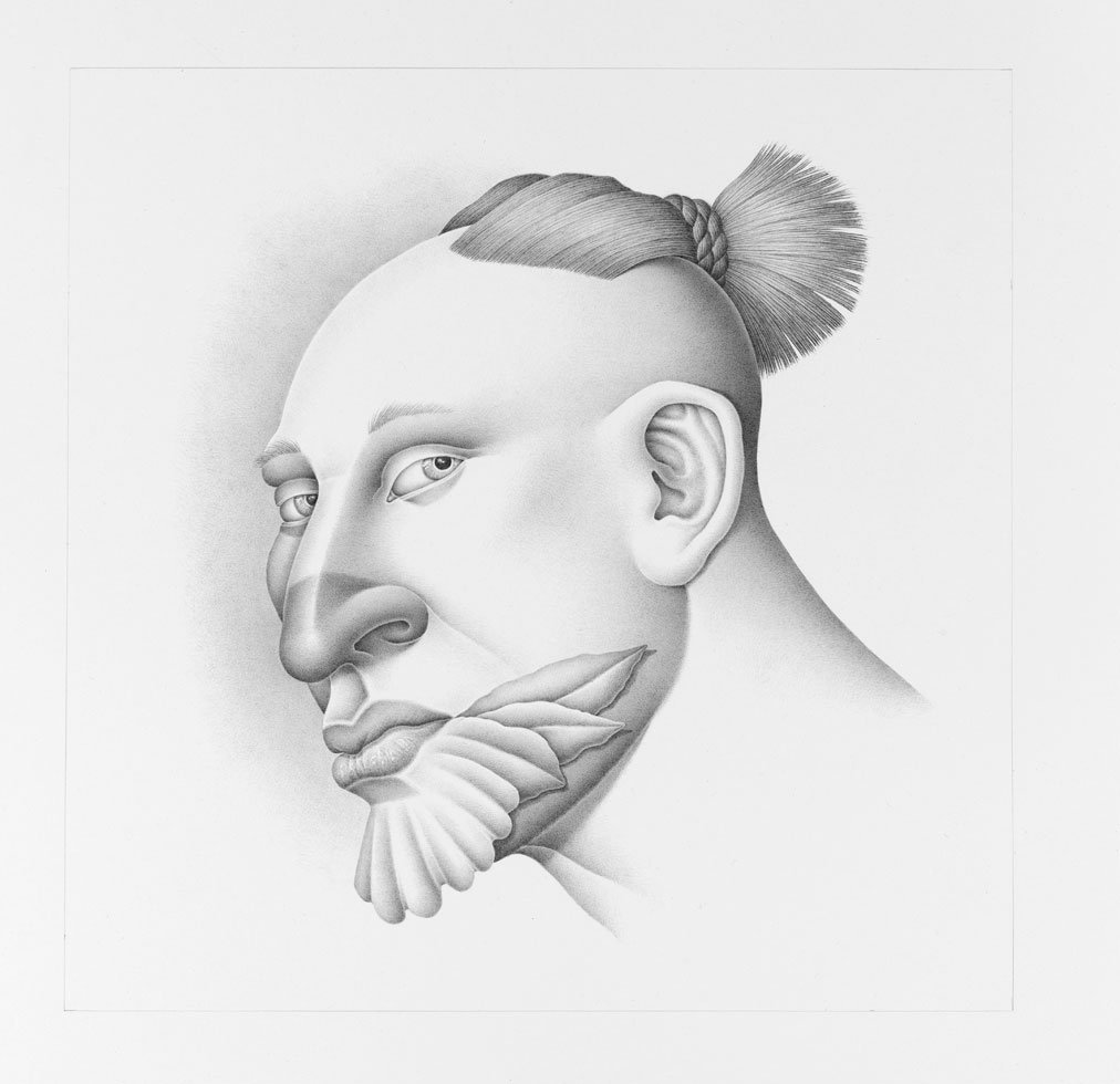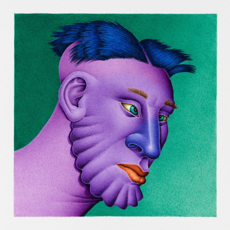 In his second exhibition at Corbett vs. Dempsey, Lostutter will unveil a suite of luscious new watercolors, as strange and particular as anything he’s accomplished to date. These bright, jewel-like works are all portraits of men, each one sporting some feature – a bald head woven in strips; a lower lip morphing into an orchid; face tinted blue; green hair tied up in a special braid – like an unknown, fantastic tribe of indigenous Central Americans. Some of them have slightly crossed eyes, recalling John Graham’s ladies, and these fellows are just as beguiling, a potent mix of psychedelia and Northern Renaissance. The watercolors are complemented by diabolically sensitive graphite drawings, featuring the same figures. Lostutter has been one of the most visible artists in Chicago since emerging on the scene the late 1960s.