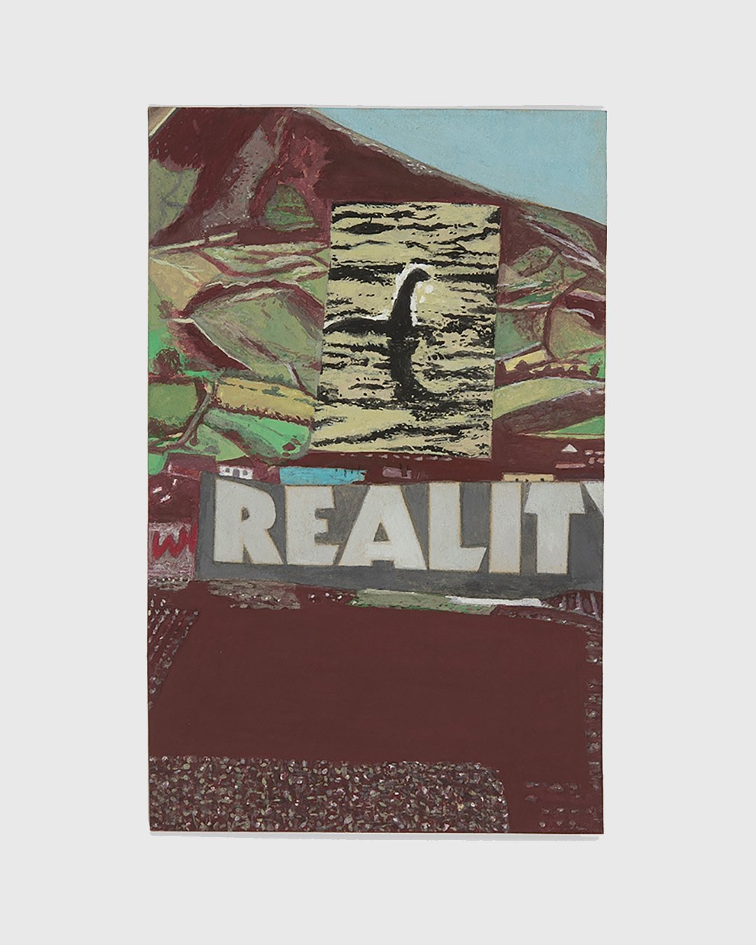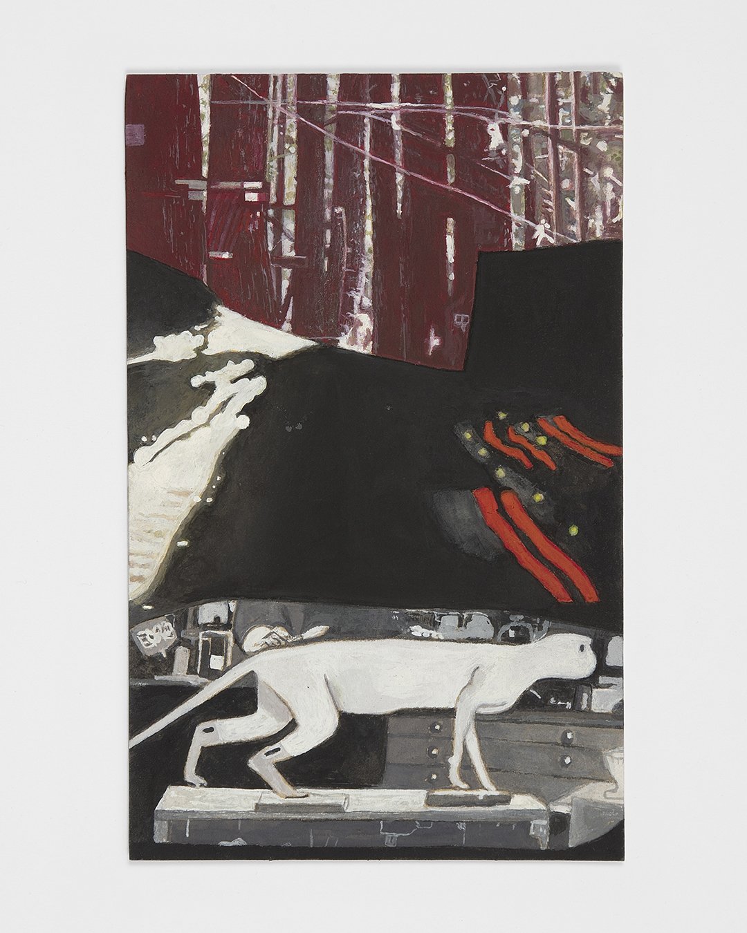I made mock ups—many trial collages from these photographic images before settling on one, then painting the image using watercolors on paper. All works are intimate, postcard or paperback book sized, appealing to analogue senses while being informed by technology and the internet.