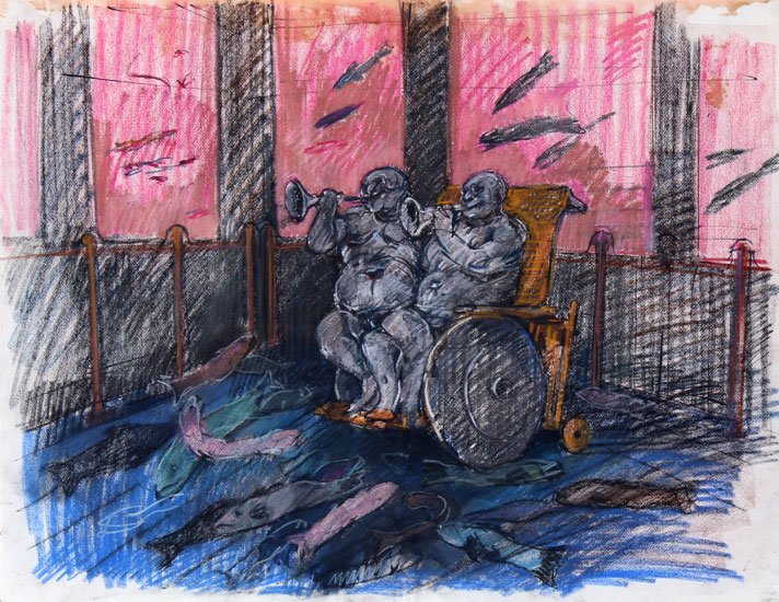 Rosofsky (1924-1981) is one of the key figures in twentieth century Chicago art. Emerging in the late 1940s as part of the movement later dubbed the “Monster Roster,” alongside Leon Golub, Nancy Spero, June Leaf, and Dominick Di Meo, he initially painted grotesque, existentially angst-ridden figures, perfect little monsters. By the early 1960s, Rosofsky had begun to develop a singularly fantastical style rooted in observational painting, creating unflinching masterworks like “Unemployment Agency” (which has hung in Mayor Rahm Emanuel’s office) and “Homage to Spain, Thalydomide Children, Others” (in the collection of the Art Institute of Chicago). Rosofsky’s brilliance as a painter is widely recognized, but he was also a spectacular draughtsman with a particular interest in drawing as both a process and a medium. Xylophone Solo spotlights fifteen great drawings – pencil, watercolor, pastel, charcoal – from the Rosofsky archives, some closely related to paintings, some imagined and executed entirely on their own. The exhibition is accompanied by a 44-page catalog with reproductions of all these and more Rosofsky works on paper.
