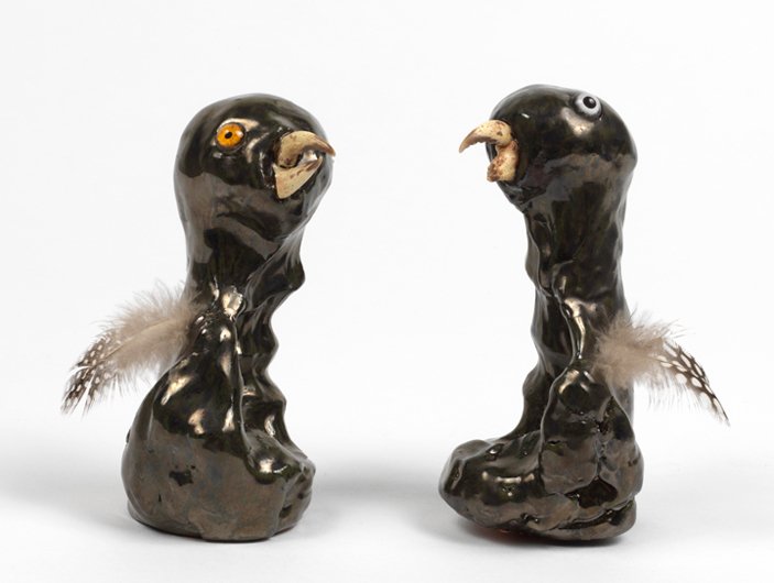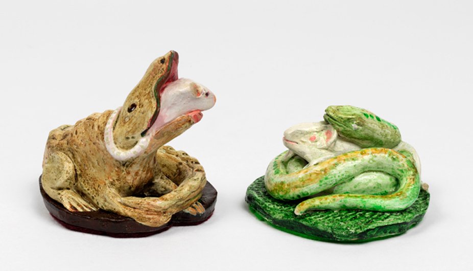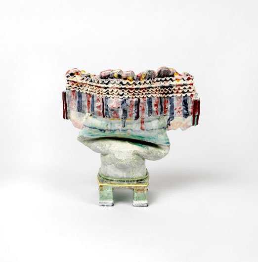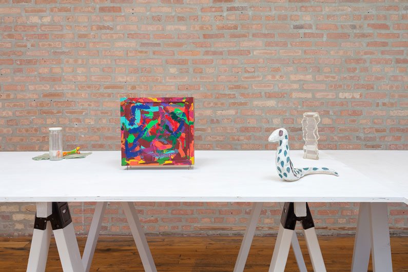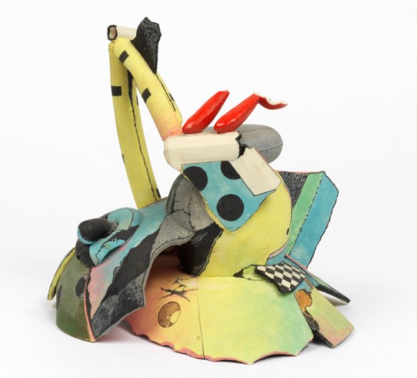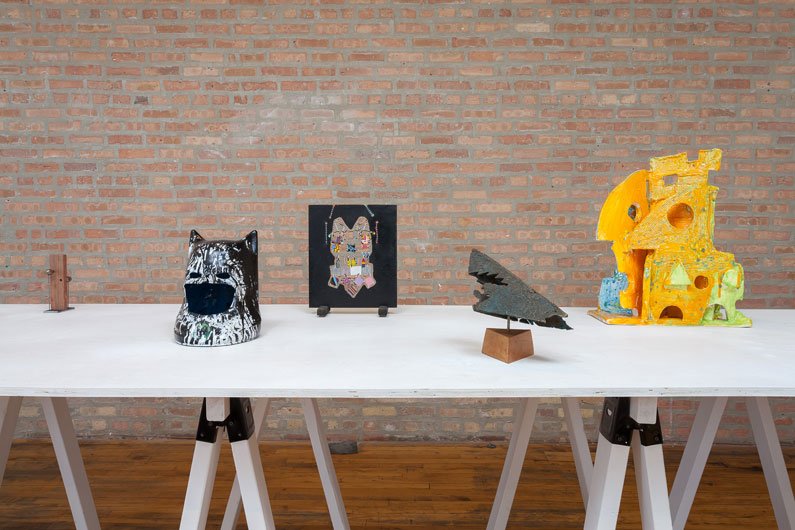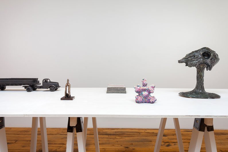 Across the surfaces of two enormous tables, spread out like pieces from an eclectic chessboard, artworks emanating from many different points of origin come head to head in this show, a rare group exhibition for CvsD which draws its inspiration from the gallery’s longstanding fascination with intimate-scale sculptural objects. The recent renaissance in ceramics is bountifully represented with exemplary historical sculptures by Bay Area “funk” figures Robert Arneson, Robert Hudson, and Gary Molitor, and contemporary works by Margot Bergman, Kathy Butterly, Alex Bradley Cohen, Elizabeth Ferry, Stanya Kahn, Ellen Lanyon, Andrew Lord, William J. O’Brien, Joakim Ojanen, Thomas Schütte, Arlene Shechet, Cauleen Smith, and Jimmy Wright. Confounding category, Richard Artschwager created the classic Formica piece “Table with Pink Tablecloth” in 1964, now part of the Art Institute of Chicago’s collection; decades later he made a scaled-down version in a tiny edition, a prototype of which is part of Small Sculpture. Like Artschwager’s piece, the eerie presence that emanates from these objects is a conceptual thread weaving throughout the show, linking uncanny works from David Adamo, Carol Bove, Peter Brötzmann, Alex Chitty, Thomas Grünfeld, Robert Guillot, Rachel Harrison, Carol Jackson, Mike Kelley, Josiah McElheny, Joshua Mosley, B. Ingrid Olson, Joyce Pensato, Pope.L, Betsy Odom, Matthew Ronay, Dieter Roth, Alan Shields, Richard Wentworth, William Weege, and Christopher Wool. Joe Brainard, Matias Faldbakken, and John Sparagana manipulate found material. Jeremy Anderson, Ted Halkin, David Hartt, Katsuhito Nishikawa, Diane Simpson, and Steven Urry all deal with architectural and/or minimal construction. The many dimensions of Chicago’s own sometimes surreal milieu are explosively represented in sculptures by Don Baum, Dominick Di Meo, Robert Donley, Ed Flood, Philip Hanson, Thomas H. Kapsalis, Rodney Quiriconi, H.C. Westermann, and Karl Wirsum.