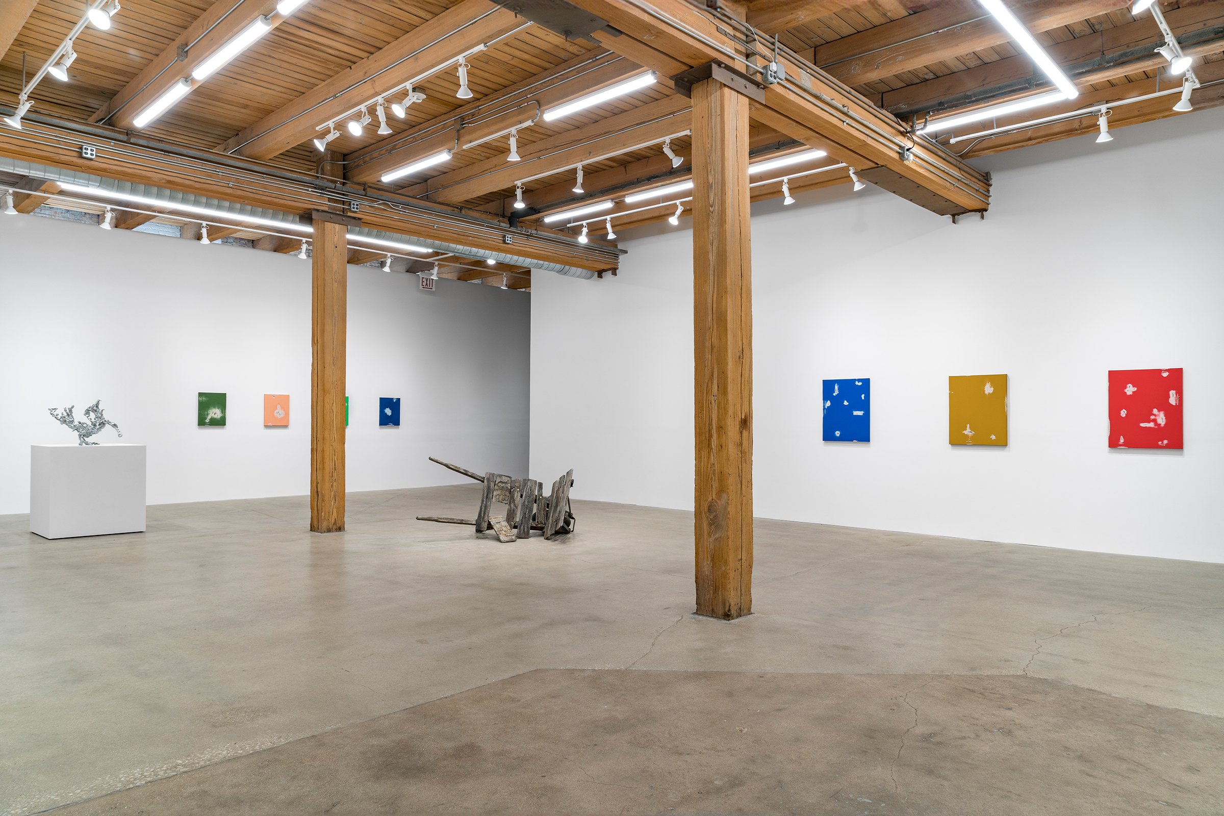 Corbett vs. Dempsey is pleased to present Blow, winds, and crack your cheeks!, an exhibition of new works by Tony Tasset. This is the artist's first show with CvsD. The centerpiece of the exhibition is "Brick Barrow," a new sculpture in bronze patinated to an incredible lifelikeness, but just out of scale, magnified to a point of being eerily more than real, perhaps unreal. Another 3-D work, a cast aluminum eagle, finds the national bird taking on an expressionistic but slightly defeated mien. On the perimeter of the South Gallery hang Tasset's new paintings, a spectrum of monochromatic canvases distressed in spots, sometimes to the point of having ragged holes. Perched like a putty eagle somewhere between the elegant and the pathetic, these works are augmented by a new video work, "My Lear," produced by and co-directed with Jennifer Reeder, enjoying its world debut in the North Gallery space, featuring the artist performing a Shakespeare monologue in his studio.